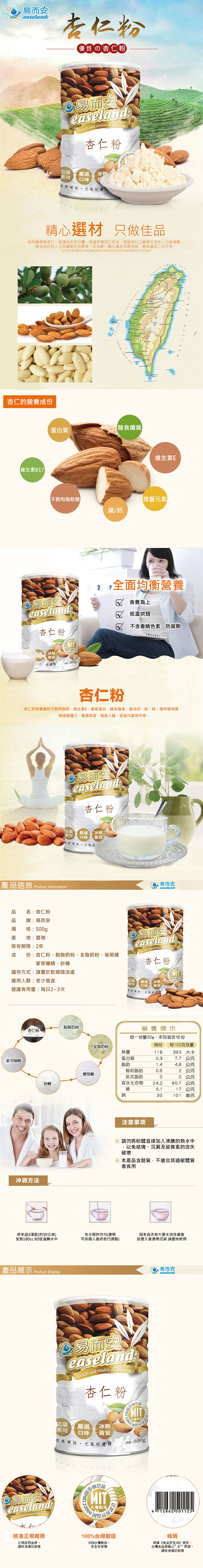 成份:杏仁粉、麥芽糊精、葡萄糖、樹薯澱粉、米精(米、大豆卵磷脂、碳酸鈣、維生素E(抗氧化劑)、澱粉液化酵素) 、全脂奶粉、綜合維生素礦物質(重酒石酸膽鹼、麥芽糊精、氧化鎂、維生素C、葡萄糖酸鋅、焦磷酸鐵、維生素 E (乙酸dl-α-生育醇酯、麥芽糊精、辛烯基丁二酸鈉澱粉、二氧化矽)、二氧化矽、菸鹼醯胺、維生素A (麥芽糊精、阿拉伯膠、玉米澱粉、維生素A醋酸鹽、維生素E(抗氧化劑))、本多酸鈣、維生素D3(辛烯基丁二酸鈉澱粉、蔗糖、L-抗壞血酸鈉(抗氧化劑)、中鏈三酸甘油酯、二氧化矽、維生素E(抗氧化劑)、維生素D3)、維生素B12 (麥芽糊精、檸檬酸鈉、檸檬酸、維生素B12)、維生素B1、維生素B6、維他命B2、維生素K1 (阿拉伯膠、維生素K1、蔗糖)、葉酸、生物素)、香料
