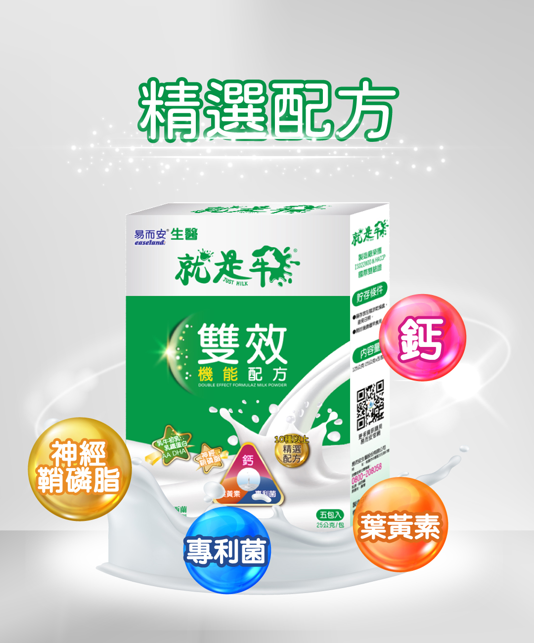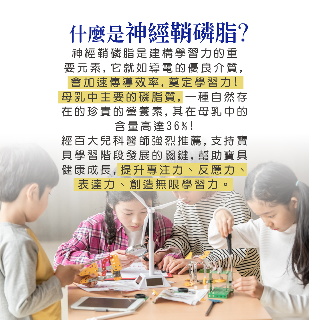 精選配方-磷脂醯絲胺酸PS、乳牛初乳(含IgG)、乳鐵蛋白、牛乳萃取物(含神經鞘磷脂)...等十多種精選配方,更全面照護您的健康。