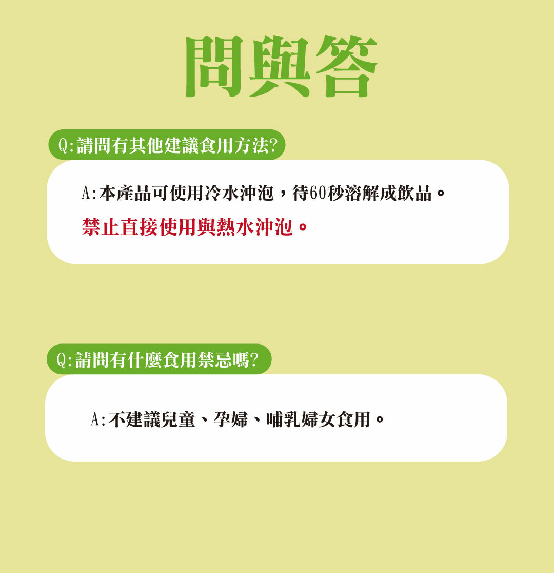 食用方法:成人每日1-2顆,取1錠,放入約250-300c.c溫或