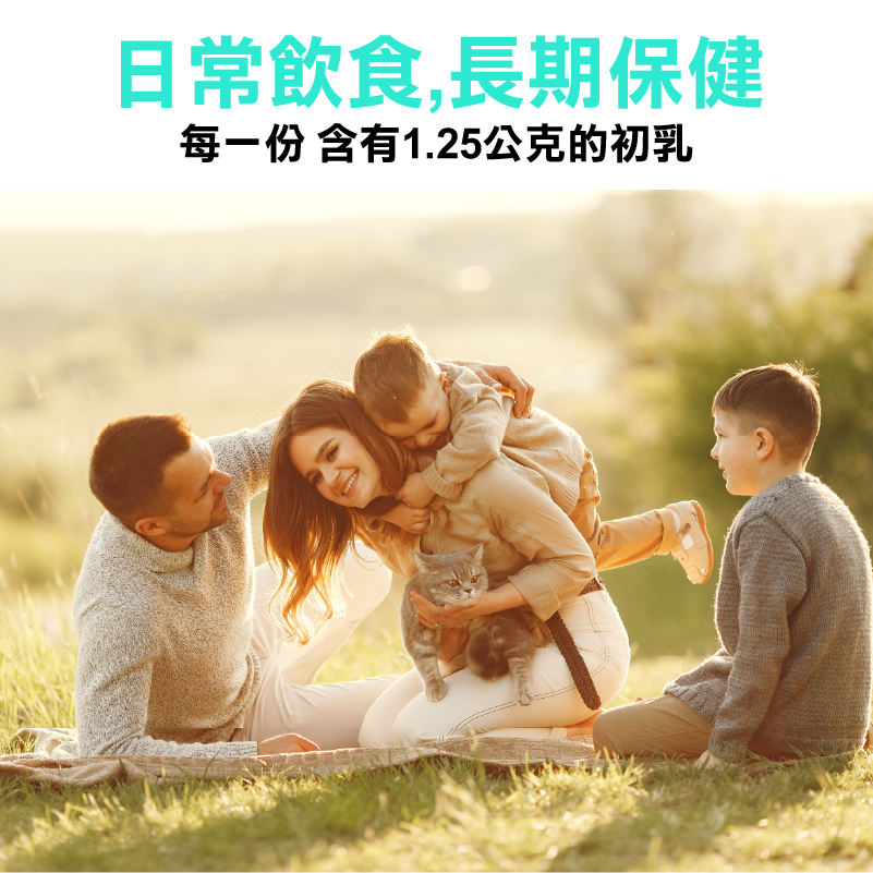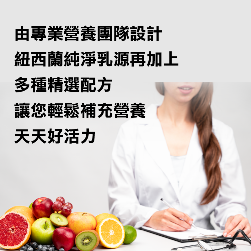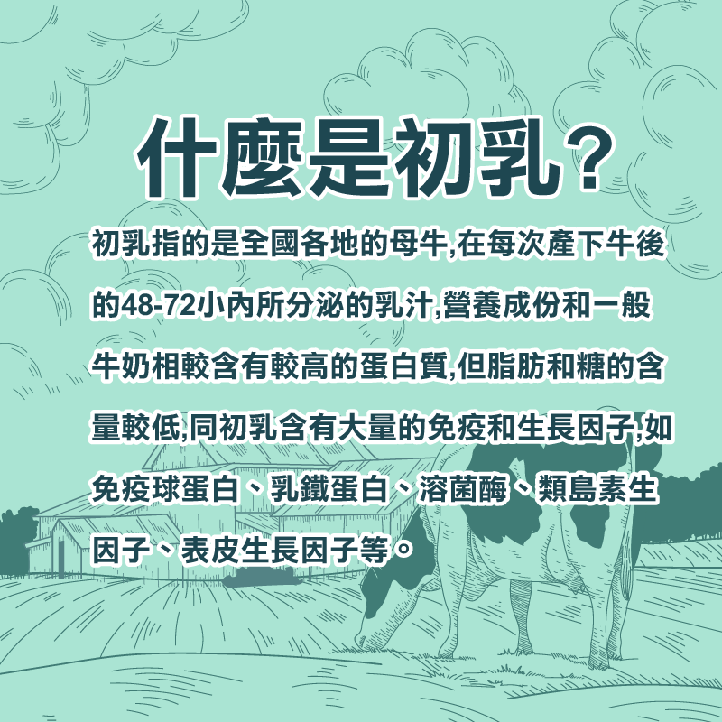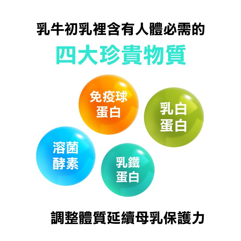 脫脂奶粉、麥芽糊精、葡萄糖、乳牛初乳(含免疫球蛋白IgG)、綜合礦物質(磷酸鈣、碳酸鈣、焦磷酸鐵、葡萄糖酸鋅、本多酸鈣、葡萄糖酸銅、碘化鉀)、關華豆膠、二氧化矽、香料、綜合維生素(維生素C、維生素E、菸鹼醯胺、維生素A、維生素D3、維生素B12、維生素B1、維生素B2、維生素B6、維生素K1、葉酸、生物素)、玉米澱粉、大豆卵磷脂、乳酸菌、綜合蔬果抽出物(鳳梨萃取物、糖化酵素、纖維分解酵素、青木瓜萃取物)。